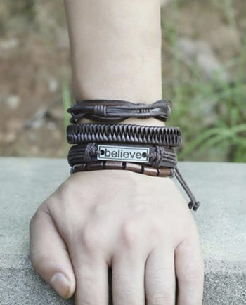 Set completo formado por varias pulseras combinables hechas a mano en piel con detalles en metal